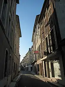 La rue Saint-Valier vers la place Pasteur ; en arrière-plan, la rue de la République.