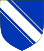 | Blasonnement | D'azur à la bande d'argent, accompagnée de deux cotices potencées et contre-potencées d'or.[1] | |
