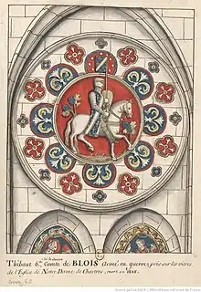 ![]() | Étienne-Henri ou Étienne II de Blois (vers 1045 – † 1102) | 1089 – 1102 | Comte de Blois Comte de Chartres Comte de Châteaudun Comte de Provins Comte de Sancerre Comte de Meaux Comte de Reims | Fils ainé de Thibaud III et de Gersende, il épouse Adèle de Normandie, fille de Guillaume le Conquérant. Sous l'influence de sa femme, il fut l'un des premiers seigneurs à répondre à l'appel du pape Urbain II pour la Première Croisade. Avec d'autres barons, il se disgracie en quittant le siège d'Antioche, mais trouva une mort plus honorable à la bataille de Ramla. |