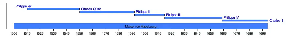 | Charles (1545-1568) | Ferdinand (1571-1578) | Diègue (1575-1582) | Philippe III (1578-1621) | ||||||||||||||||||||||||||||