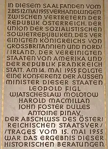 Après la Seconde Guerre mondiale, le bâtiment en bon état de la Schwarzenbergplatz, alors connue sous le nom de Stalinplatz, était le siège du Conseil allié. L'Autriche a été occupée par la Grande-Bretagne, la France, les États-Unis et l'URSS de 1945 à 1955. Dans la Maison de l'Industrie, du 2 au 12 mai 1955 des pourparlers préparatoires sur le traité d'État autrichien s'y sont tenus. Les ministres des Affaires étrangères des puissances occupantes se sont également réunis dans le bâtiment le 14 mai. Le 15 mai 1955, le traité d'État est alors solennellement signé.