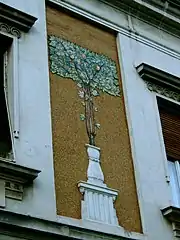La maison de la Société pour l'embellissement de Vračar, située 1 rue Njegoševa, a été construite en 1902 d'après un projet de l'architecte Milan Antonović. Dotée d'un étage, elle a été conçue à des fins résidentielles et commerciales. Cette maison, qui possède encore une structure d'ensemble académique a été l'une des premières de la Belgrade à intégrer des éléments Art nouveau ; ces éléments sont particulièrement visibles au niveau de l'attique, de l'escalier intérieur avec des rambardes en fer forgé ou encore du motif central peint sur la façade. L'avancée centrale traditionnelle est remplacée par une composition en mosaïque surmontant l'entrée. Les avancées latérales, peu accusées, sont séparées du reste par des pilastres et des motifs peints rappelant ceux de la mosaïque centrale. Des motifs plastiques apparaissent à leur place traditionnelle dans le style académique : autour des fenêtres, sur les chapiteaux, au niveau de l'attique ; mais ils représentent des motifs figuratifs, floraux ou géométriques stylisés[1].