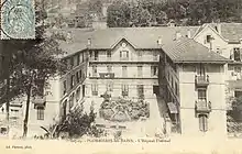 En 1861, Napoléon III donne les écuries de son équipage, construites en 1858 entre la rue Grillot et la rivière, pour y loger l'hôpital appelé dorénavant hôpital thermal, qui est pourvu de ferronneries A. Salin et Cie, fondeurs à Ecurey (Meuse). Le bâtiment est inauguré le 15 juin 1862. Destiné aux étrangers, civils et religieux, il est complété en 1894 par un hôpital annexe destiné aux infirmes et vieillards de la commune, construit à l'emplacement de l'hôtel du Lion d'Or sur des plans de l'architecte Curvat grâce aux dons de Sébastien Grillot et à l'héritage de la famille Husson. Les ferronneries sont réalisées par les établissements A. Salin à Ecurey (Meuse). En souvenir d'Augustin Husson (1786-1854) et de son fils Augustin, l'établissement est dénommé hospice des Deux Augustins. En 1925, la ville construit un pavillon d'isolement avec, au rez-de-chaussée, un laboratoire de recherches scientifiques subventionné par l'institut d'hydrologie de Paris. En 1936, la chapelle est pourvue d'un décor intérieur réalisé par l'entreprise Gentil et Bourdet, de Boulogne-Billancourt, suivant des dessins de Franck Danis, fils de l'architecte Robert Danis, qui est intervenu dans différents bâtiments thermaux de la ville [2].
