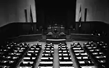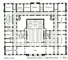 1. La salle plénière, qui a été agrandie à plusieurs reprises dans toutes les phases de construction, a été réduite à ses dimensions d'origine de 1880. La structure du bâtiment de Raschdorff est restaurée en un complexe à quatre ailes avec des pièces environnantes, des galeries et une cour intérieure. Les murs et les plafonds uniformément blancs valorisent les éléments historiques préservés tels que l'escalier et les doubles colonnes.