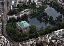 Le bâtiment se dresse sur le Kaiserteich (étang de l'Empereur), à l'ancienne limite de la forteresse de Düsseldorf, rasée à la suite du traité de Lunéville de 1801. Les espaces verts ont été aménagés sous Napoléon Bonaparte. Le directeur du jardin, Maximilian Weyhe, a ensuite utilisé les vestiges de la forteresse en 1835 pour aménager le Spee'sche Graben, les anciennes douves, et les terrasses.