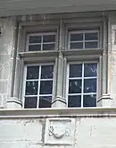 Une première façade est bâtie au XIIIe siècle, derrière l'actuelle. En 1418 l'actuelle façade est construite avec un passage couvert sous arcade qui se prolongeait dans les façades de toutes les autres maisons de la rue. Le style architectural est du gothique tardif[1],[2]. En 1832 elle est transformée, les arcades sont notamment fermées. En 1934 des travaux de restauration sont entrepris. Les arcades sont partiellement dégagées et les fenêtres en croix sont restituées.