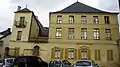 Le bâtiment, donnant rue du Ménil, s'élève sur deux étages, avec un portail à pilastres cannelés surmonté d'un fronton brisé. Le rez-de-chaussée est surélevé, d'où un escalier droit en U avec rampe en fer forgé pour accéder au portail. Trois lucarnes à fronton triangulaire éclairent les combles. La date de construction de ce bâtiment, 1629, est indiqué par les têtes de tirants métalliques en façade[1].