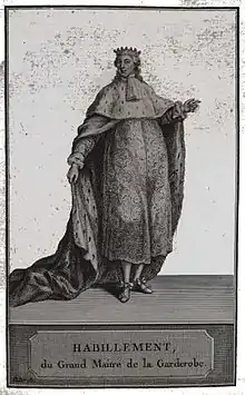 Service créé en 1585 par Henri III, il est chargé du cérémonial public : baptêmes, mariages et enterrements royaux, sacre et couronnement, entrées royales, festins royaux, réceptions d'ambassadeurs, états généraux, etc. Il est dirigé par le grand maître des cérémonies, assisté par le maître et l'aide des cérémonies.
