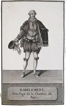 1 grand chambellan. 4 premiers gentilshommes. 24 pages. 4 gouverneurs des pages. 4 sous-gouverneurs. 1 maître de mathématiques. 1 maître en fait d'armes. 1 maître à danser.