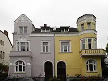 Les maisons jumelles ont généralement entre 1 et 3 étages. Les éléments architecturaux de leur façade sont en symétrie axiale.