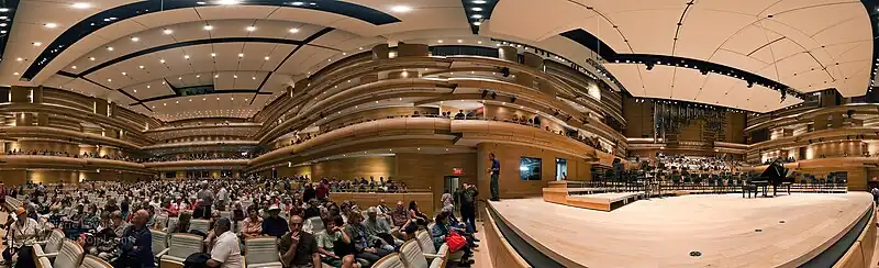 La salle, construite en un peu plus de deux ans, peut accueillir jusqu’à 2 100 spectateurs (ou 1 900 spectateurs et 200 choristes dans le chœur), ainsi que 120 musiciens sur scène. Elle est de forme rectangulaire, plus précisément du style dit boite à chaussures (en)[6],[7].
