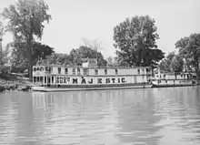 Majestic est un bateau fluvial dont la coque en bois a été gainée à l'intérieur d'une coque en acier et celle-ci est toujours visible de l'intérieur du bateau. Sa superstructure abritant le théâtre a été peu modifiée depuis 1969[1]. Le dernier des showboats itinérants originaux, Majestic a été construit en 1923 à Pittsburgh en Pennsylvanie et a sillonné la rivière Ohio et d'autres parties de son bassin versant pendant de nombreuses années, offrant des spectacles dans les villes le long du chemin. Le showboat n'a ni moteur ni moyen de mouvement. Par conséquent, il était couplé à un remorqueur l' Attaboy qui le transportait d'un lieu à l'autre. Son constructeur Tom Reynolds et sa famille l'ont possédé et dirigé jusqu'en 1959. Reynolds lui-même est né dans une ancienne famille de showboat. Le premier bateau de Tom Reynolds était l' Illinois, détruit par un incendie en 1916, qu'il a remplacé par la construction de l' America.