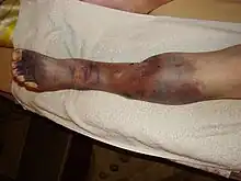 En cas d'ulcère veineux, la contention[13] et la prise de pentoxifylline[14] accélèrent la cicatrisation.