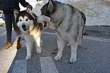 Le pelage du Malamute d'Alaska est un double manteau. Le sous-poil a une texture huileuse et laineuse et peut mesurer jusqu'à deux pouces d'épaisseur[5]. Le poil de garde extérieur est grossier et se dresse sur le corps, plus long au garrot mais pas plus d'un pouce sur les côtés du corps. Les oreilles sont petites par rapport à la tête et restent fermement dressées lorsqu'elles sont attentives. Le Malamute d'Alaska est un chien lourd, avec une nature et une structure plus imposantes que le Husky sibérien, qui est élevé pour la vitesse. Le Malamute d'Alaska est élevé pour la puissance et l'endurance, qui sont sa fonction originelle et ce que le standard de la race exige des éleveurs de Malamute d'Alaska.