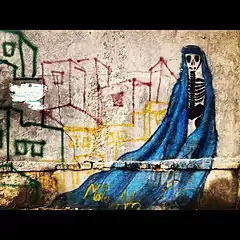 Elle acquiert une notoriété internationale pour ses graffitis représentant un squelette portant une burqa bleue, un autoportrait renvoyant à la condition des femmes en Afghanistan[3].
