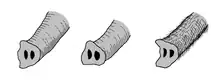 Grâce aux nombreuses découvertes de fossiles de mammouth, il est possible de reconstruire l'histoire évolutive de ce genre au travers d'études morphologiques. Les espèces de mammouths peuvent être identifiées à partir du nombre de crêtes émaillées (ou lamelles) sur leurs molaires : les espèces primitives ont peu de crêtes, et ce nombre augmente progressivement au fur et à mesure que les espèces ont évolué pour se nourrir d'aliments plus abrasifs. Dans un même temps, les couronnes des dents et les crânes deviennent plus profonds et la longueur du crâne mesurée du front à la nuque se réduit pour minimiser le poids de la tête[75],[76]. Les crânes courts et hauts du mammouth laineux et du mammouth de Colomb (Mammuthus columbi) constituent le stade ultime de ce processus évolutif[77].