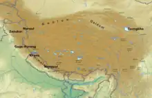 Mangyül Gungthang noté Mangyul sur une carte du plateau du Tibet