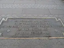 Une plaque commémorative est inaugurée le par le président de la République, René Coty : « Le devant la tombe de l'Inconnu les étudiants de France, manifestant en masse, les premiers résistèrent à l'occupant »[17]. Elle est située sur la façade de l'hôtel Landolfo-Carcano (actuelle ambassade du Qatar), au 156 avenue des Champs-Élysées, à l'angle avec la place de l'Étoile.