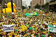 La manifestation du rassemble plus d'un million de personnes seulement à São Paulo[2]. La manifestation du à São Paulo est le plus grand mouvement de protestation que la ville ait connu, surpassant le mouvement populaire Diretas Já de 1984[3]. La manifestation du rassemble jusqu'à 3 millions de personnes[4].