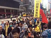 La participation de la manifestation dépassa les prévisions de la police. Initialement, la police réserva les voies de direction ouest seulement pour les manifestants, ce qui n'a pas suffi. Les manifestants demandèrent d'ouvrir les voies de circulation restantes pour faciliter la manifestation. À cause de la circulation lente et de la participation massive, la manifestation s'étendit aussi dans la direction opposée jusqu'à la rue Tin-Chong au Point-Nord, à l'Est de départ de la manifestation[42] tandis que la marche se dirigeait vers l'Ouest. La police ouvrit finalement les voies de circulations restantes et le chemin Hennessey fut rempli par les manifestants.