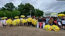 Il pleuvait vers 18h. Les manifestants ouvrirent leurs parapluies sur le Queensway à Admiralty. Ce schéma est assez similaire aux manifestations de 2014 à Hong Kong, familièrement appelées « la Révolution des parapluies » .