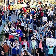 Au début, les manifestations réclament la non-augmentation du prix du ticket de métro, qui est accordée. Mais ensuite, les manifestants réclament la démission du président Piñera à cause de la répression violente présente dès le début du mouvement, et l'adoption d'une nouvelle Constitution[36],[37],[60], ainsi qu'une réforme du système des retraites et une déprivatisation de l’accès à l’eau (le Chili est le seul pays à imposer un droit de propriété sur l’eau)[61], tous les trois étant hérités de la dictature militaire d'Augusto Pinochet[36],[37]. De manière plus générale, ils demandent des réformes profondes du système économique chilien[36].