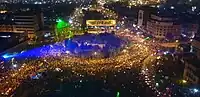 La mort de Qassem Soleimani est accueillie avec joie par des manifestants[52]. Nombre d'entre eux dénoncent à la fois l'Iran et les États-Unis[53],[54],[55]. Le , à Bassorah et Nassiriya, des manifestants bloquent le passage de cortèges funéraires symboliques pour Soleimani et al-Mouhandis, ce qui provoque des affrontements[53]. Le à Bagdad, de milliers d'Irakiens manifestent la place Tahrir aux cris de « non à l’Amérique, non à l’Iran ! »[56].