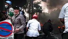 Le les dirigeants de la manifestation disent qu'ils sont prêts à des négociations dès que l'armée se retirerait, mais le gouvernement leur répond qu'aucune condition ne peut être exigée tant qu'ils sont derrière leurs barricades[14]. Une demande de cessez-le-feu et de médiation du sénat est rejetée par le gouvernement. L'assaut final est donné le par l'armée, appuyée par des véhicules blindés. Il y a des témoignages de soldats tirant sur des équipes médicales tentant de venir au secours de victimes[15]. Les dirigeants des chemises rouges se rendent à la police et demandent aux manifestants d'abandonner[16]. Les combats continuent cependant dans de nombreuses parties de la ville, des manifestants refusant toute reddition incendiant la bourse de Bangkok, la station de la télévision officielle, le centre commercial Central World et des banques, et des douzaines d'émeutes ont lieu dans toute la Thaïlande. Les militaires déclarent le couvre-feu. Les troupes sont autorisés à ouvrir le feu sur tout individu pillant, incendiant, ou incitant aux troubles[15].