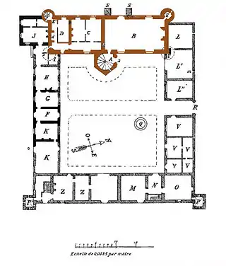 Vers 1665, un défaut dans les fondations a nécessité de limiter leur chargement en le réduisant d'un étage et en limitant la charpente donnant au logis un toit à faible pente. Pour compenser la perte des salons du second étage, des bâtiments ont été aménagés autour de la cour, contre le mur d'enceinte, pour les réinstaller des salons de réception et des dépendances.