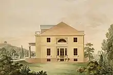 À la fin du XVIIIe siècle, le roi Frédéric-Guillaume II a ordonné la création de la chaussée de Berlin à Potsdam (de) , une route artificielle pavée qui est considérée comme la première chaussée moderne du royaume de Prusse[1]. La route connue plus tard sous le nom de route provinciale Berlin- Potsdam passe par le centre du village de Steglitz et fait un virage serré à l'actuelle Wrangelstraße. C'est là que David Gilly fait construire le premier manoir sur la cour d'un ancien manoir dans les années 1795-1801. Exécuté jusqu'au bout, le conseiller de cabinet Carl Friedrich von Beyme, qui deviendra plus tard grand chancelier et ministre de la Justice, acquiert la propriété et achève le manoir sous la direction de Heinrich Gentz en 1808. Surtout, le rez-de-chaussée est transformé en un façon qui diffère des plans initiaux.