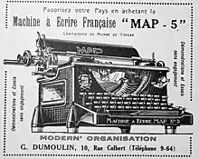 Sa principale réalisation est la production de machines à écrire[5],[10]. Elle oriente aussi sa production pour satisfaire les besoins de la FN comme la fabrication d’outillages pour honorer des commandes militaires ou encore l’assemblage de motocyclettes à la fin des années 1920. En 1936, en réponse à un appel d’offres pour la fourniture d’un pistolet automatique (PA) de 7,65 mm, la MAP propose le Browning 1936. Mais ce sont les prototypes proposés par la SACM (le futur PA 1935 A) et la MAS (le futur PA 1935 S) qui sont finalement retenus en 1937[6].