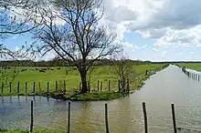 Le marais desséché est en fait un polder. Il est cerné de digues qui le protègent à la fois de la mer et de l'eau du bassin versant.