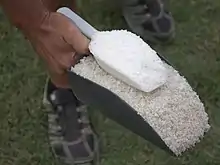 Ensuite, pour récolter le sel, il faut faire preuve d’habileté à travers différents outils en bois, tels que : le las à long manche de 5 mètres permettant la récolte du gros sel ; la lousse pour la fleur de sel ; et le râteau à limu permettant d’expulser les algues[16].