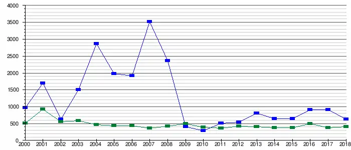 Si 1953 est considérée comme l'année la plus sèche, 2000 est au contraire la plus pluvieuse[8].