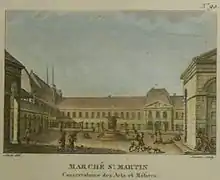 En , la ville de Paris supprime le marché Saint-Martin et cède le terrain à l'État pour y construire l'École centrale des arts et manufactures[4] (aujourd'hui annexe « Montgolfier » du Conservatoire national des arts et métiers, au 2, rue Conté).