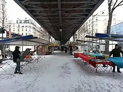 Ce marché est protégé des intempéries par son placement sous la partie aérienne de la ligne 6 du métro de Paris. Les marchands disposent leurs étals sur une seule allée entre les stations Dupleix et La Motte-Picquet - Grenelle, entre les deux voies du boulevard de Grenelle.