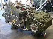 La boîte de mécanismes Renk (en) HSWL 194 comprend une boîte de vitesses automatique possédant quatre vitesses en marche avant et quatre en marche arrière. Il possède une direction assistée utilisant un groupe hydrostatique de direction (GHD)[11]. Elle intègre également des freins à disque et ralentisseur hydrocinétique pour les freinages d'urgence. Son poids à sec est de 1 250 kg.