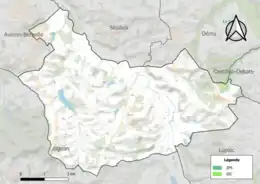 L'occupation des sols de la commune, telle qu'elle ressort de la base de données européenne d’occupation biophysique des sols Corine Land Cover (CLC), est marquée par l'importance des territoires agricoles (92 % en 2018), une proportion identique à celle de 1990 (92,1 %). La répartition détaillée en 2018 est la suivante : zones agricoles hétérogènes (59,9 %), terres arables (31 %), forêts (8,1 %), cultures permanentes (1,1 %)[23]. L'évolution de l’occupation des sols de la commune et de ses infrastructures peut être observée sur les différentes représentations cartographiques du territoire : la carte de Cassini (XVIIIe siècle), la carte d'état-major (1820-1866) et les cartes ou photos aériennes de l'IGN pour la période actuelle (1950 à aujourd'hui)[Carte 2].