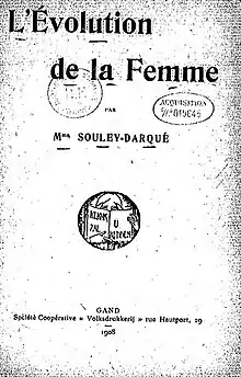 Sur le plan des idées, Mme Souley-Darqué s’affirme proche de Clémence Royer (1830-1902) dont elle est l’amie, la disciple et cohéritière[15]. De la philosophe qui a traduit Darwin en français, elle retient le principe de l’évolution biologique des espèces par adaptation à de nouvelles conditions de vie : elle l’applique à l’histoire des femmes et publie en 1908 un essai convaincu sur L'Évolution de la femme[Note 2].