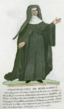 Marguerite de Lalaing[1], comtesse de Berlaymont, vicomtesse d'Ervillers, née en 1574 et décédée en 1650, était la fille de Philippe II de Lalaing (†1582) et l'épouse de Florent de Berlaymont. Fondatrice du couvent des Dames de Berlaymont, à Bruxelles, elle est issue d’une illustre famille du Hainaut, dont le domaine est situé le long de la Scarpe, près de Douai. Elle est la fille de Philippe de Lalaing, dont la sœur Christine s’est illustrée en défendant Tournai contre les troupes du duc d’Albe en 1583.