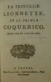 - La Princesse Lionnette et le prince Coquerico, 1743