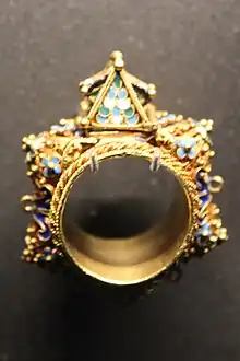 Le marié passe alors l'anneau d'or sur la première phalange de l'index de l'épousée qui plie le doigt sitôt après. Il s'agit d'une transaction : l'homme donne à la femme un anneau précieux et celle-ci en acceptant ce cadeau se réserve à son époux, d'où le terme mékoudechet déclaré par le futur époux simultanément qui signifie en Hébreu « consacrée » ou « réservée »[1].