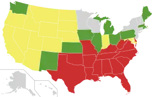 | 1832 | Noirs | Loi abrogée durant la Reconstruction, puis rétablie | |