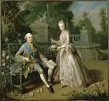 Louis-Jean-Marie de Bourbon, duc de Penthièvre et sa fille, Louise-Adelaïde, représentés dans un jardin par Jean-Baptiste Charpentier le Vieux, 1768.