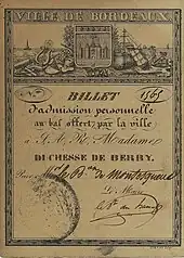 Le , une boîte en or du maître-orfèvre parisien Morel, ornée d'une miniature de Duchesne (1770-1856) représentant la duchesse de Berry, offerte par elle le au vicomte du Hamel, maire de Bordeaux, en remerciement de l'accueil royal de la ville lors de sa « mission » de propagande politique précitée, qui avait été depuis conservée par les descendants sans avoir été exposée, a été vendue aux enchères à Bordeaux à un collectionneur de souvenirs historiques pour la somme de 35 980 euros, au double des estimations[23].