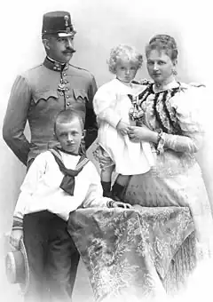 - Charles François Joseph (1887-1922) qui épouse en 1911 Zita de Bourbon-Parme (1892-1989) et succède à l'empereur François-Joseph en 1916. Empereur d'Autriche et roi de Hongrie, il doit renoncer au pouvoir en novembre 1918 et meurt en exil à Madère en 1922. Il est le père de huit enfants.