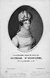 - 9 juin 1799 – 16 septembre 1824 : Son Altesse Royale la duchesse d'Angoulême, fille de France ;