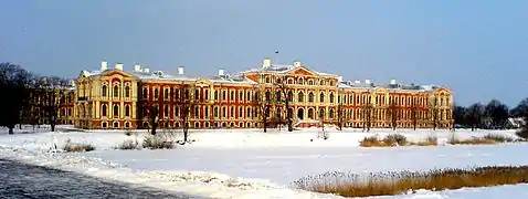Grâce à l’entremise de l'empereur de Russie Paul Ier, Marie-Thérèse peut quitter la cour de Vienne en pour rejoindre son oncle et son futur époux réfugiés sous la protection de l'empereur au château de Mittau en Courlande (aujourd’hui Jelgava en Lettonie). Le , Louis-Joseph de Montmorency-Laval, évêque de Metz et grand aumônier de France, célèbre le mariage, en présence du futur Louis XVIII et de son épouse Marie-Joséphine de Savoie. L'abbé Henri Edgeworth de Firmont qui avait accompagné Louis XVI jusqu'à l'échafaud, a tenu également à être présent lors de la cérémonie pour bénir le couple princier. L'acte de mariage[29] est rédigé par le comte de Saint-Priest.