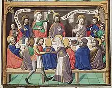 « Six jours avant la Pâque, Jésus vint à Béthanie, où était Lazare, que Jésus avait ressuscité d'entre les morts. On lui fit là un repas. Marthe servait. Lazare était l'un des convives. Alors Marie, prenant une livre d'un parfum de nard pur, de grand prix, oignit les pieds de Jésus et les essuya avec ses cheveux ; et la maison s'emplit de la senteur du parfum. Mais Judas Iscariote, l'un des disciples, celui qui allait le livrer, dit : « Pourquoi ce parfum n'a-t-il pas été vendu trois cents deniers qu'on aurait donnés à des pauvres ? » Mais il dit cela non par souci des pauvres, mais parce qu'il était voleur et que, tenant la bourse, il dérobait ce qu'on y mettait. Jésus dit alors : « Laisse-la : c'est pour le jour de ma sépulture qu'elle devait garder ce parfum. Les pauvres, en effet, vous les aurez toujours avec vous ; mais moi, vous ne m'aurez pas toujours ». »