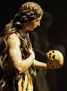 Elles sont nombreuses : on la représente le visage émacié, habillée de haillons, ou nue recouverte d'une longue et épaisse chevelure, elle a tantôt la peau noire, tantôt la peau claire. Elle est parfois accompagnée d'anges ou de démons.
